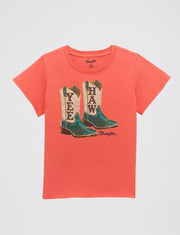 No matter what’s on her to-do list for the day, she can’t go wrong with her favorite jeans and one of our Girl’s Wrangler® Western Graphic Tees. Crafted from cotton, this classic crewneck short-sleeve shirt will keep her comfortable from sunup to sundown. It comes with a colorful graphic print that your cowgirl is sure to love.