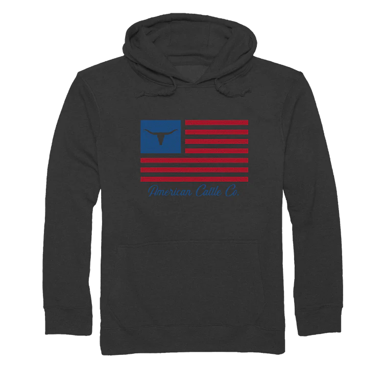 American Cattle Company Flag Hoodie-Charcoal Heather