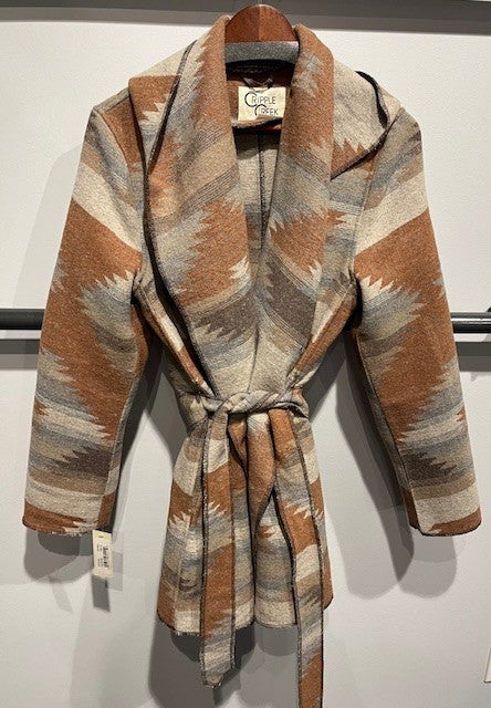 Navajo Tie Front Blanket Wrap Jacket W/ Hood Copper Rust