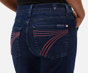 - Signature back pocket 7 embroidery with pink ombre contrast stitching