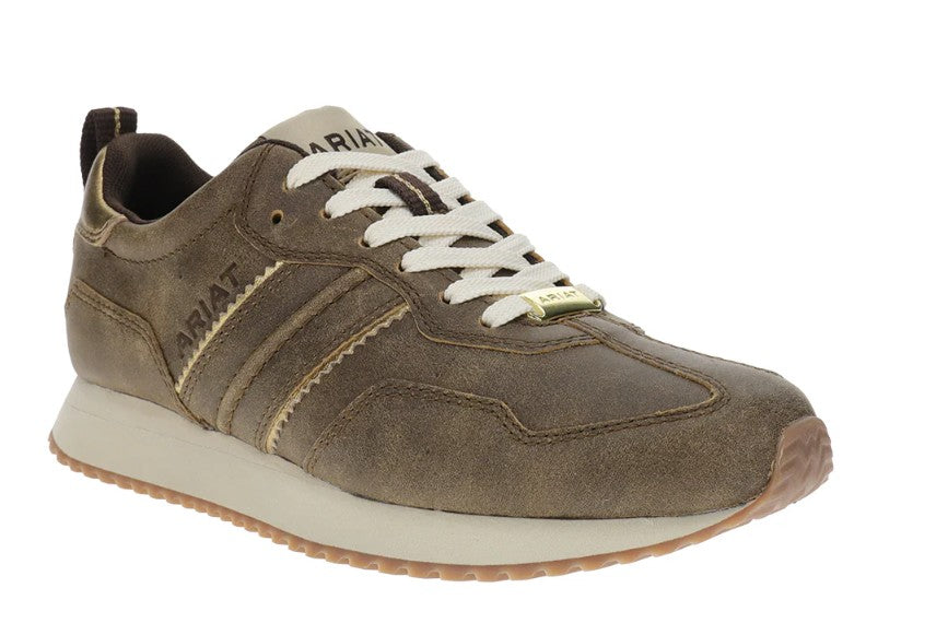 The MVP of your casual wardrobe in a rich Brown Bromber finish. The Ariat Ranch Runner Trainer pairs a mixed material and leather upper with Ariat's signature comfort technology — retro-inspired style with a lace-up silhouette that works from the ranch to the weekend.