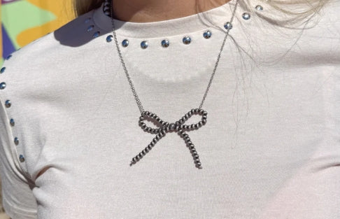 The viral pearl bow necklace is here! Our Cowgirl Pearls Necklace is sterling silver featuring elegant Navajo pearls shaped like a bow. This necklace truly captures the elegance and grace of the Wild West. Accent your blouses or pair it with your favorite jacket (like the Lawless jacket) for a laid back, stylish look.