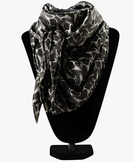 Tie it around your neck in a classic cowboy knot for authentic western style, wear it as a headband to keep hair back, use it as a hat band for added flair, or drape it loosely for a casual look. The bold deer skull print in black and white makes a striking statement that pairs perfectly with denim, leather, and boots.