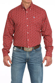 Men's Cinch Red Long Sleeve Patterned Button Down Shirt MTW1105945