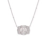 The original SpurWest belt buckle necklace. A jewelry piece you won't find anywhere else. Crafted with precision, our unique buckles feature a brilliant silver luster, courtesy of rhodiumization. As the most prized metal in the Platinum family, rhodium ensures both style and durability. Tarnish-resistant and skin-friendly, these pieces stand tall as a new staple for western style.
