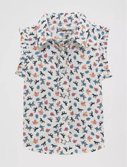 She can rock the cowgirl look even on the warmest of days wearing our Little Girl’s Sleeveless Ruffle Western Shirt. It’s crafted from a comfortable cotton blend with a fun and vibrant print across the shirt. This tank also comes with ruffles at the sleeve, a pointed collar, and pearl snaps to complete her look in true Western style.